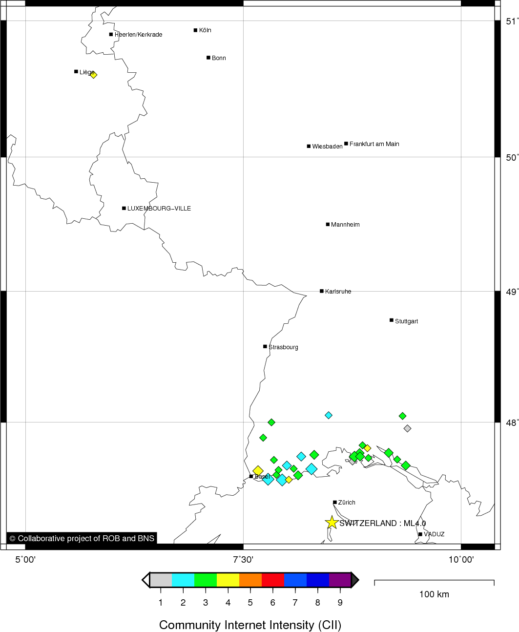 Lage des Epizentrums 47.220° N, 8.520° E Unsicherheit ± 10.0 km