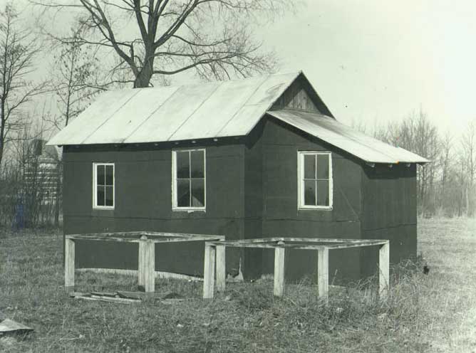 Figure 7: J.-M. Van Gils, en 1966, devant la "cabine de la sismologie" de l'O.R.B., où ont été effectués les enregistrements des sismomètres Wiechert de 1962 à 1970 et, ensuite, Sprengnether/Press-Ewing jusqu'en 1985. Les six enregistreurs permettaient d'enregistrer sans interruption pendant les changements de rouleaux les trois composantes Est-Ouest, Nord-Sud et Verticale du sismomètre.