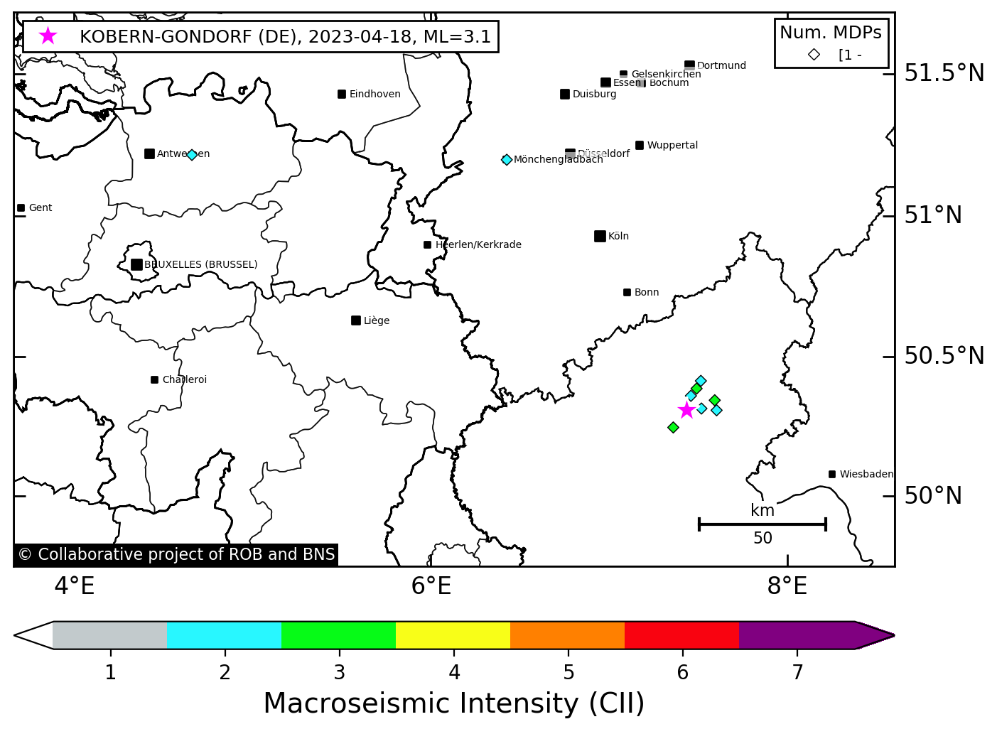 | Lage des Epizentrums | 50.317° N, 7.454° E Unsicherheit ± 0.7 km |