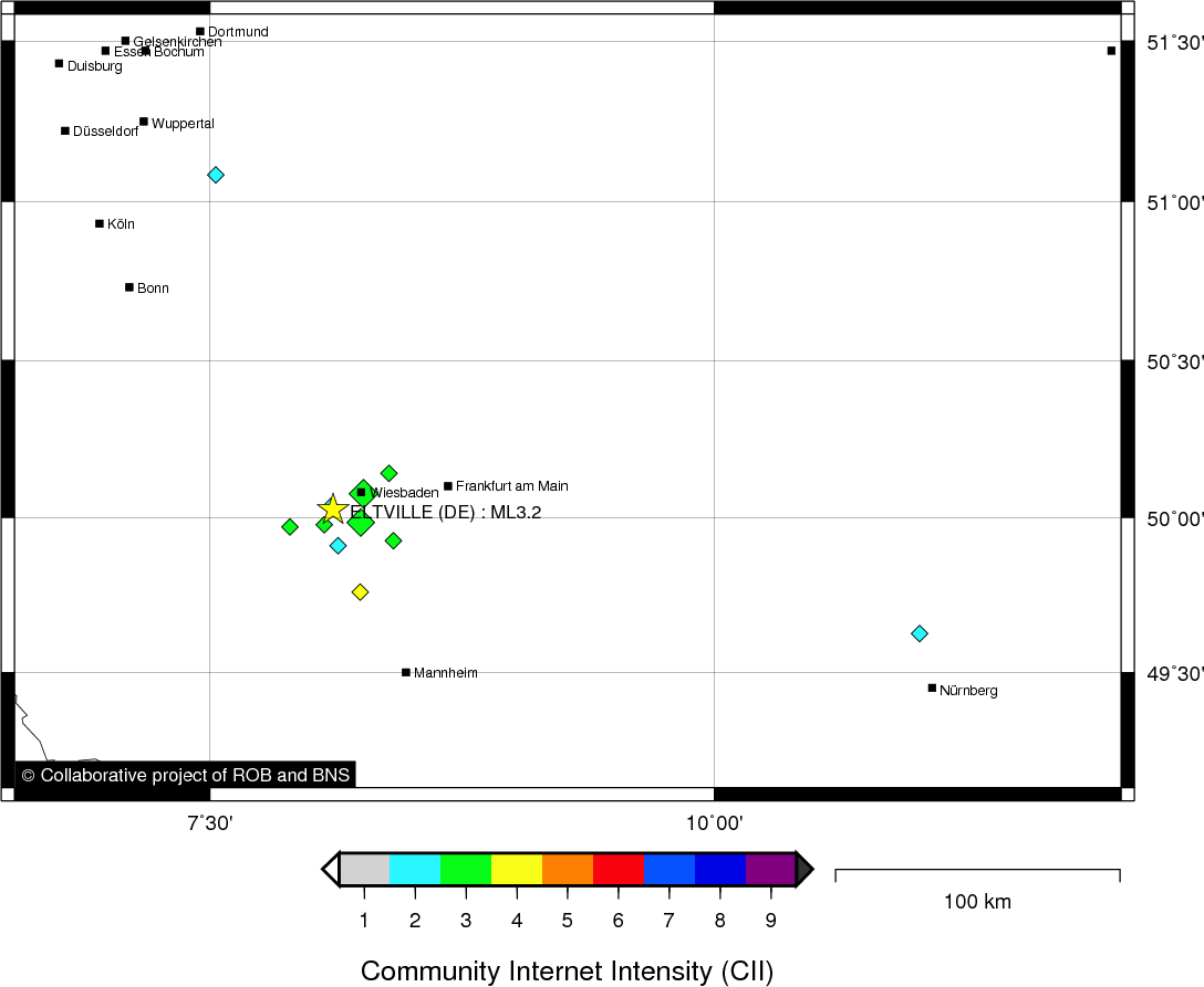 Epicentral coordinates 50.024° N, 8.112° E Uncertainty ± 3.2 km