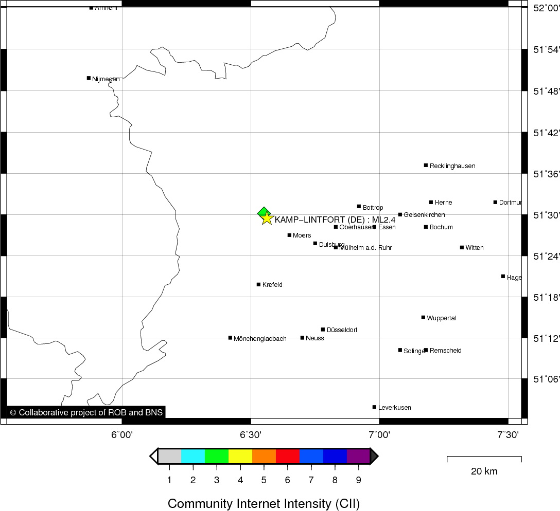 | Epicentral coordinates | 51.491° N, 6.563° E Uncertainty ± 1.0 km |