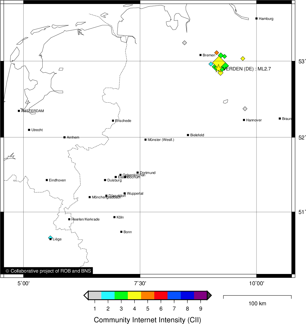 Epicentral coordinates 52.902° N, 9.186° E Uncertainty ± 2.0 km