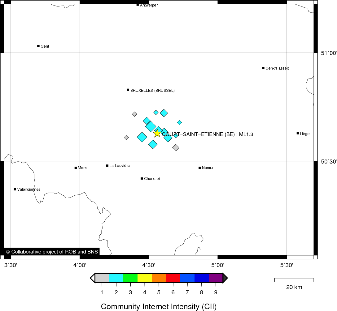 | Epicentral coordinates | 50.629° N, 4.562° E Uncertainty ± 0.7 km |