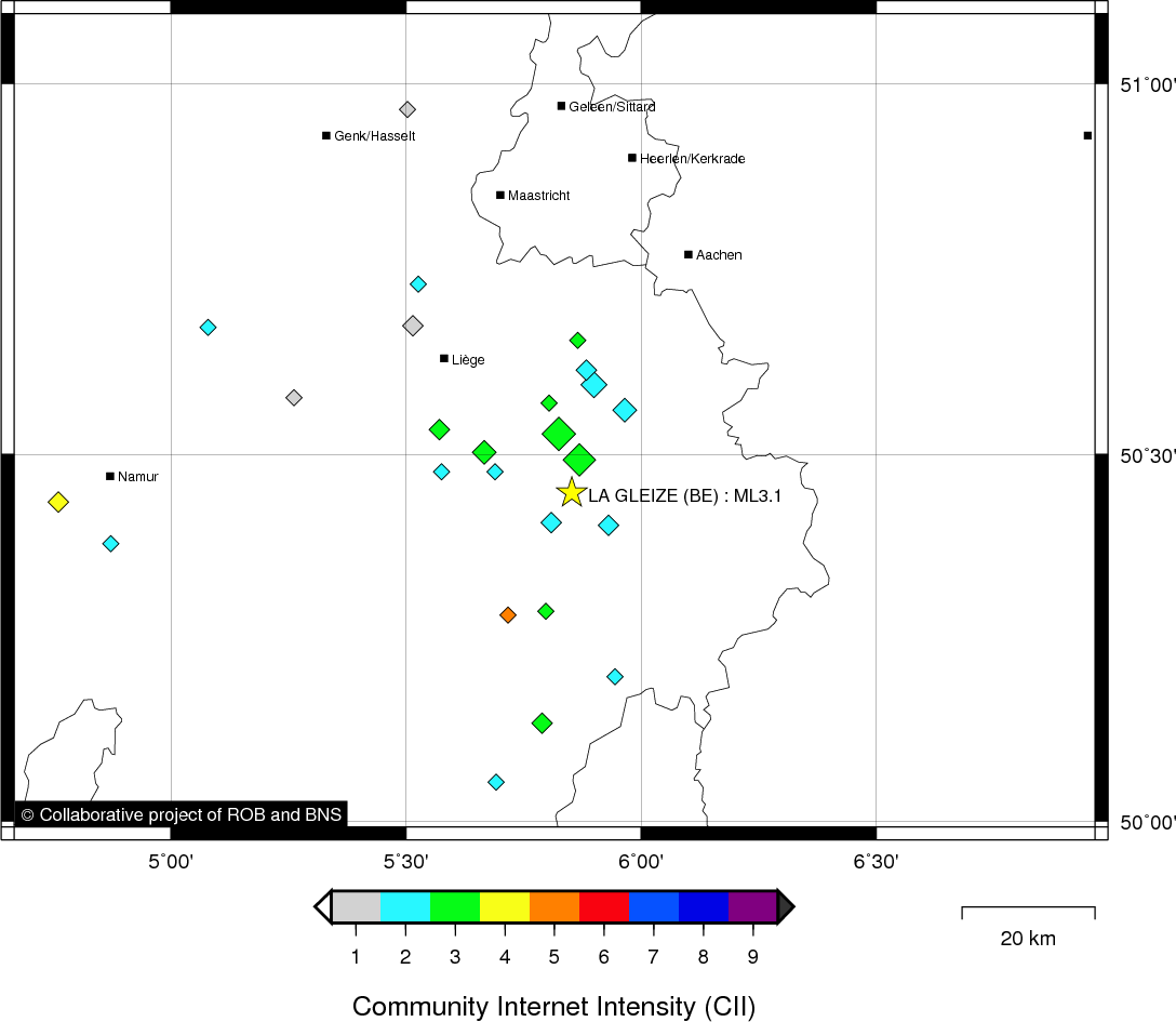 | Epicentral coordinates | 50.448° N, 5.853° E Uncertainty ± 0.5 km |