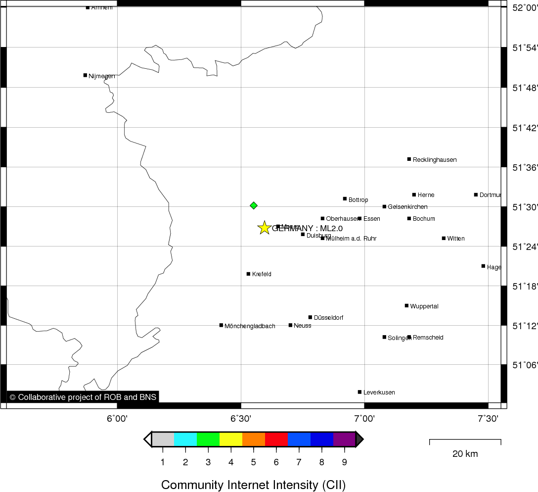 | Epicentral coordinates | 51.446° N, 6.596° E Uncertainty ± 4.0 km |