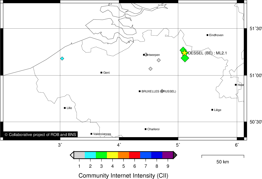 | Epicentral coordinates | 51.240° N, 5.109° E Uncertainty ± 0.8 km |