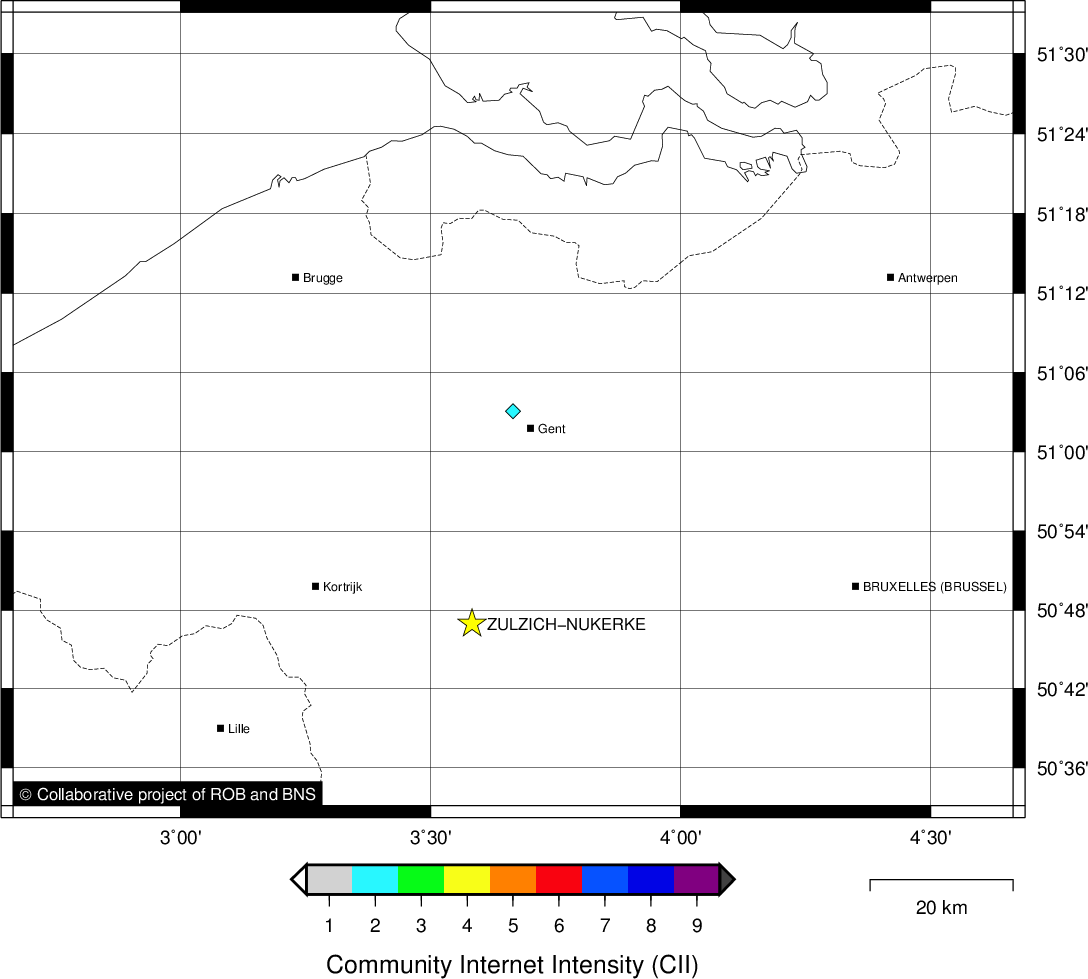 | Epicentral coordinates | 50.783° N, 3.583° E |