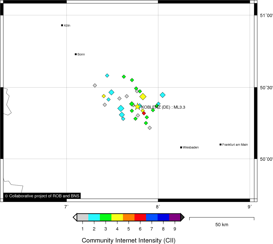 Epicentral coordinates 50.366° N, 7.775° E Uncertainty ± 1.9 km