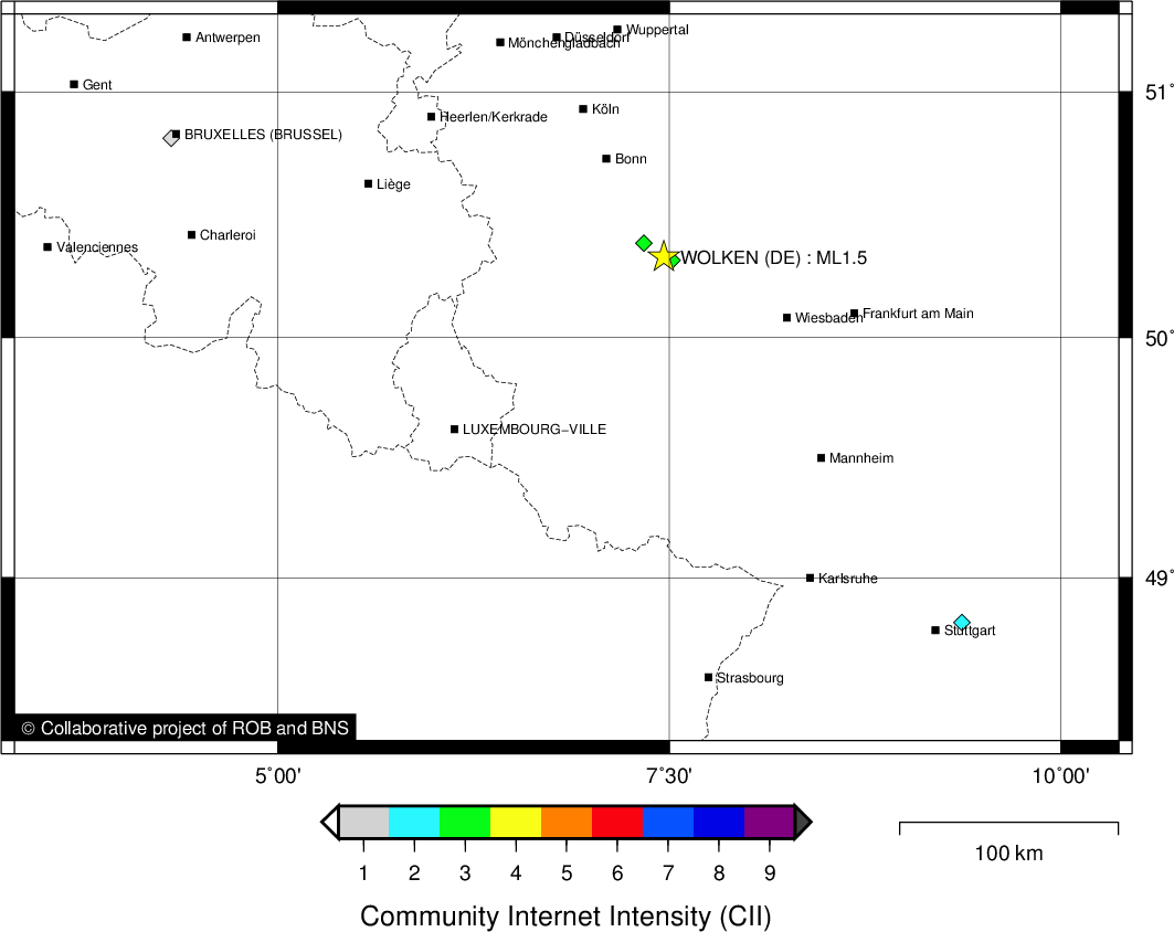 Epicentral coordinates 50.329° N, 7.464° E Uncertainty ± 4.1 km