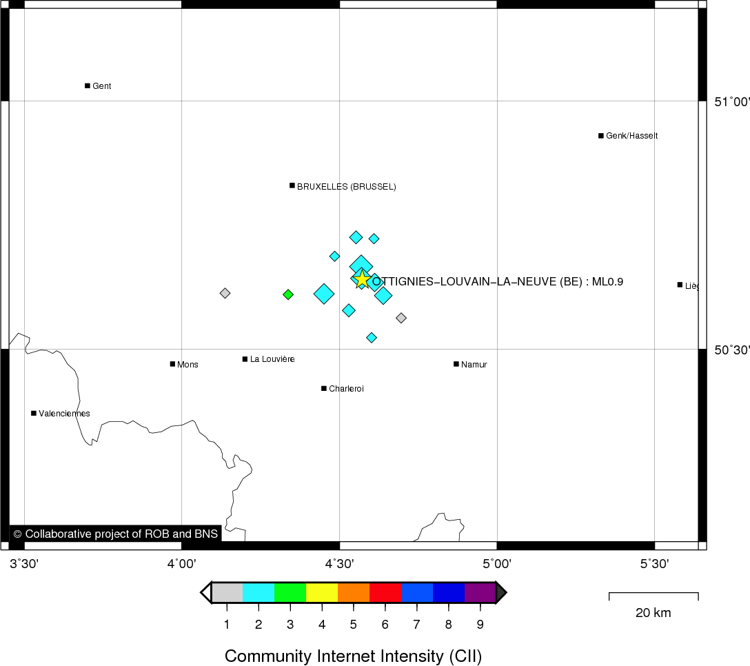 | Epicentral coordinates | 50.640° N, 4.573° E Uncertainty ± 1.0 km |