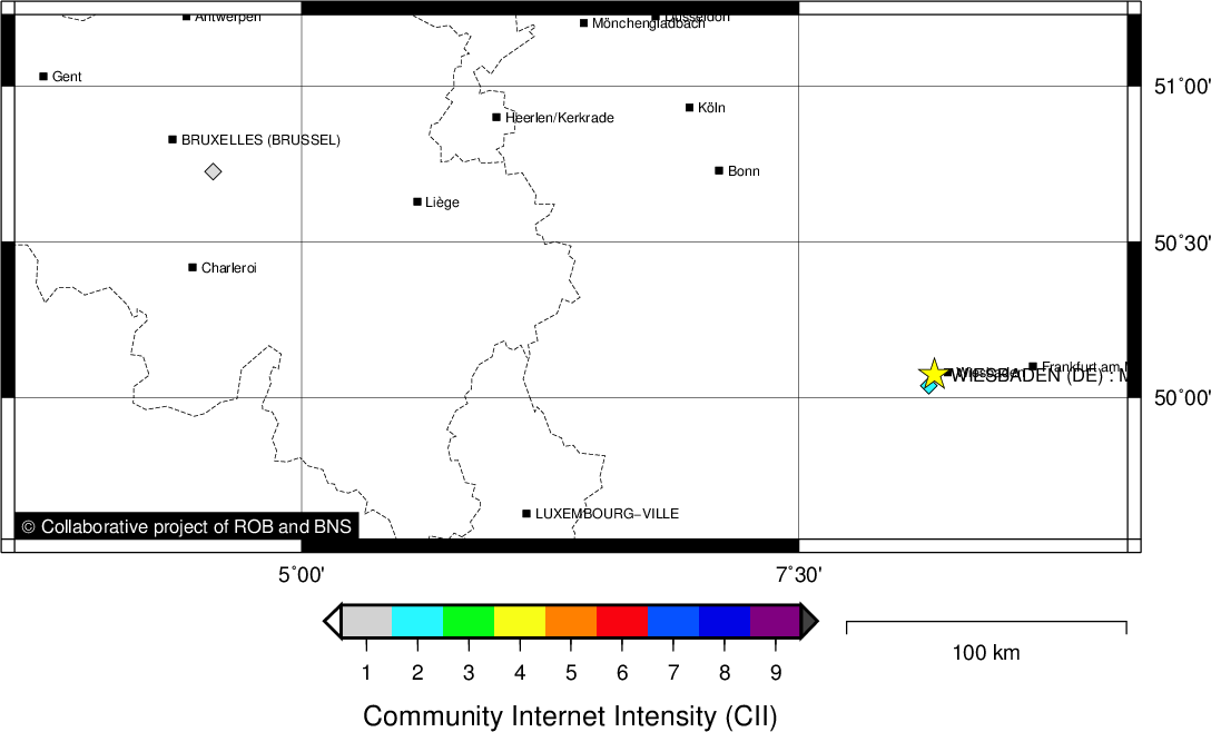 Epicentral coordinates 50.073° N, 8.183° E Uncertainty ± 9.7 km