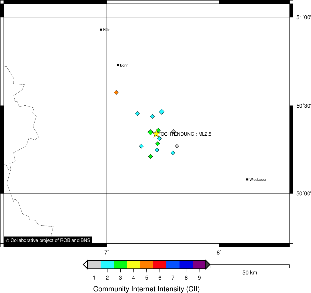 Attention! The intensities derived from the macroseismic enquiry are raw unverified data.