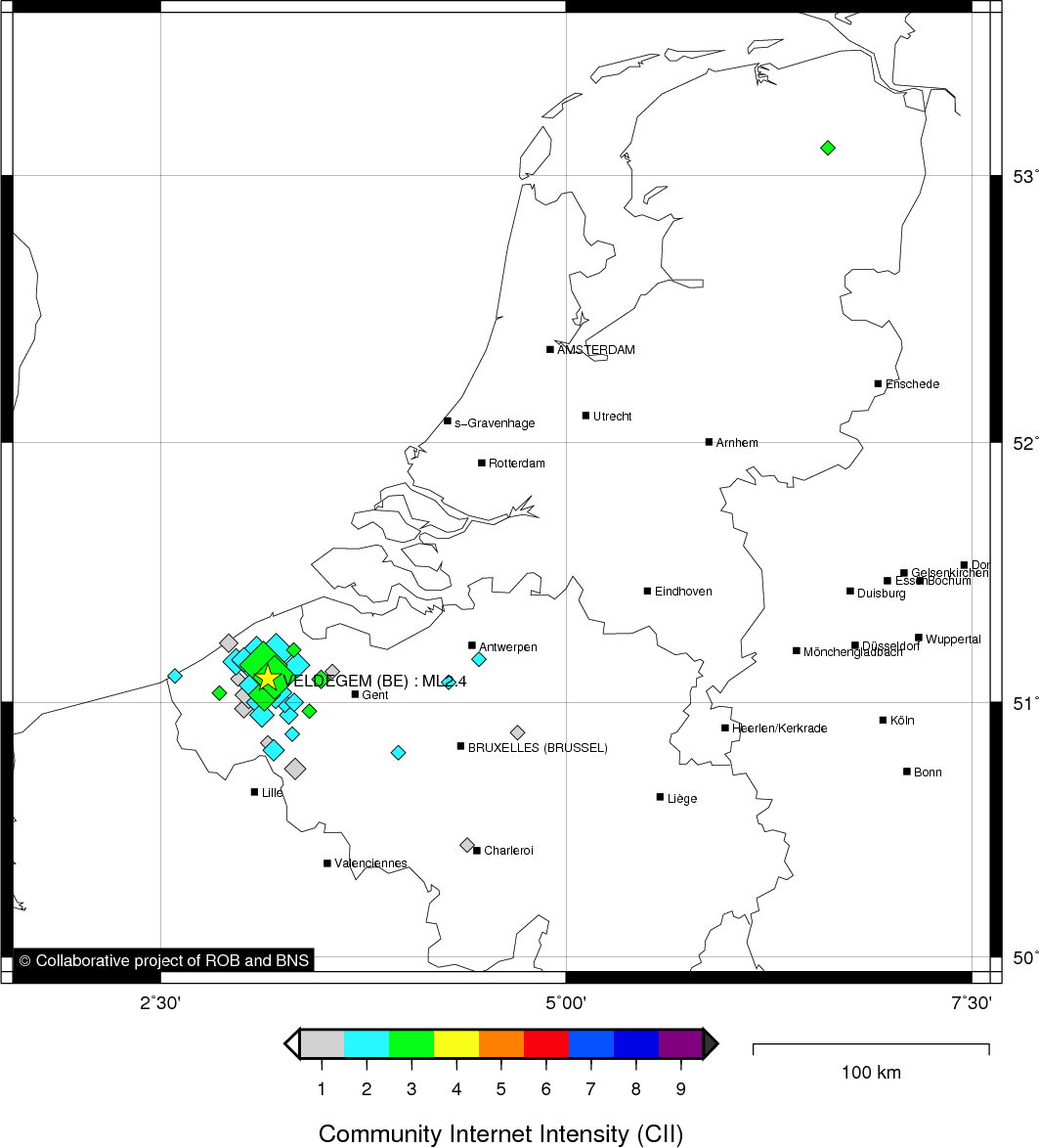 Epicentral coordinates 51.074° N, 3.146° E Uncertainty ± 1.6 km