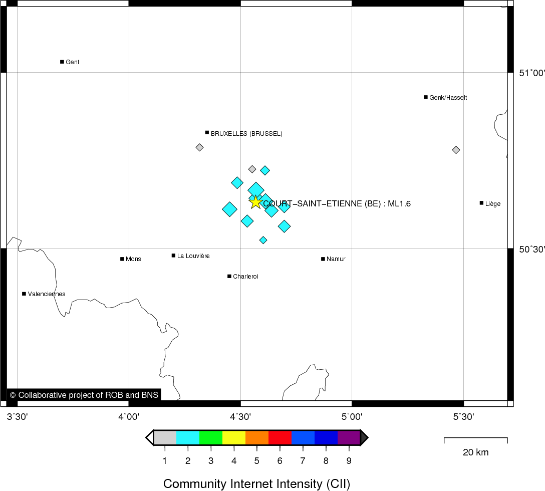 | Epicentral coordinates | 50.631° N, 4.568° E Uncertainty ± 0.7 km |